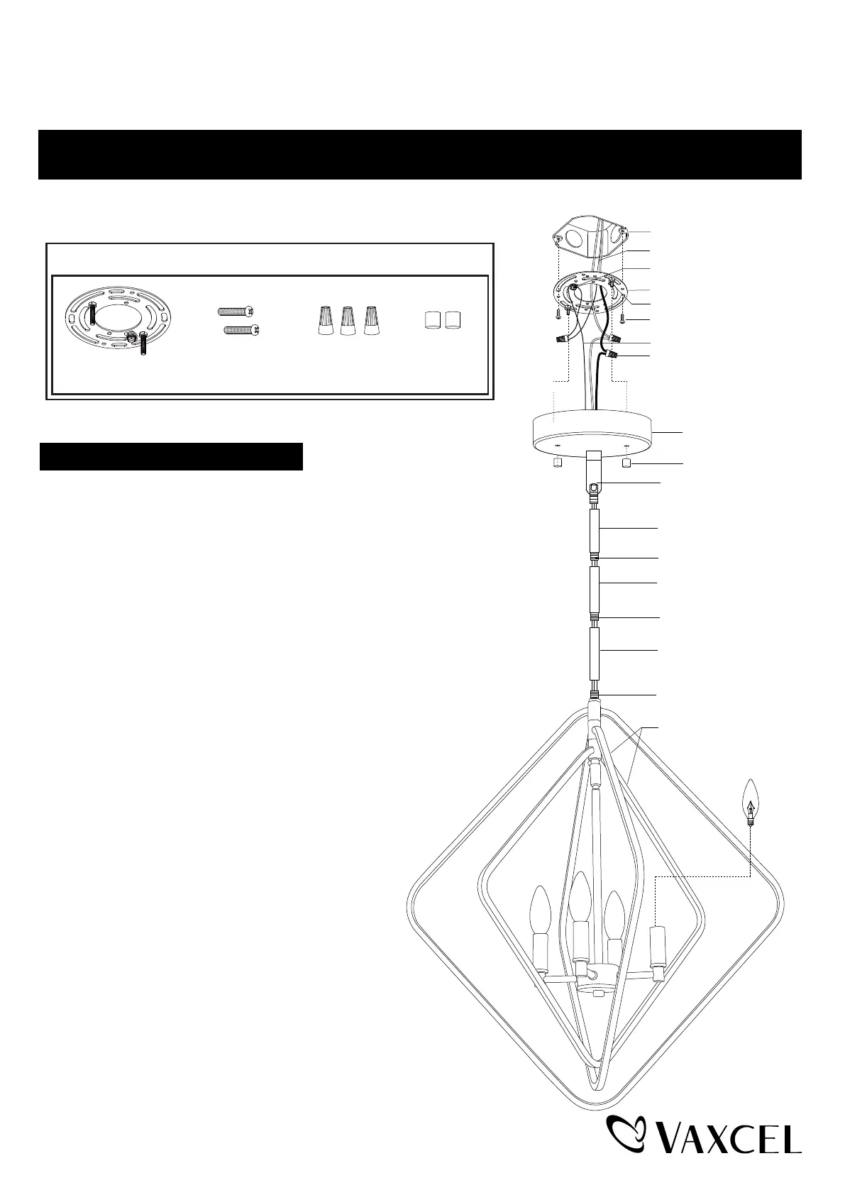 7. Install 4 x 60W Max. candelabra base bulbs (not included).