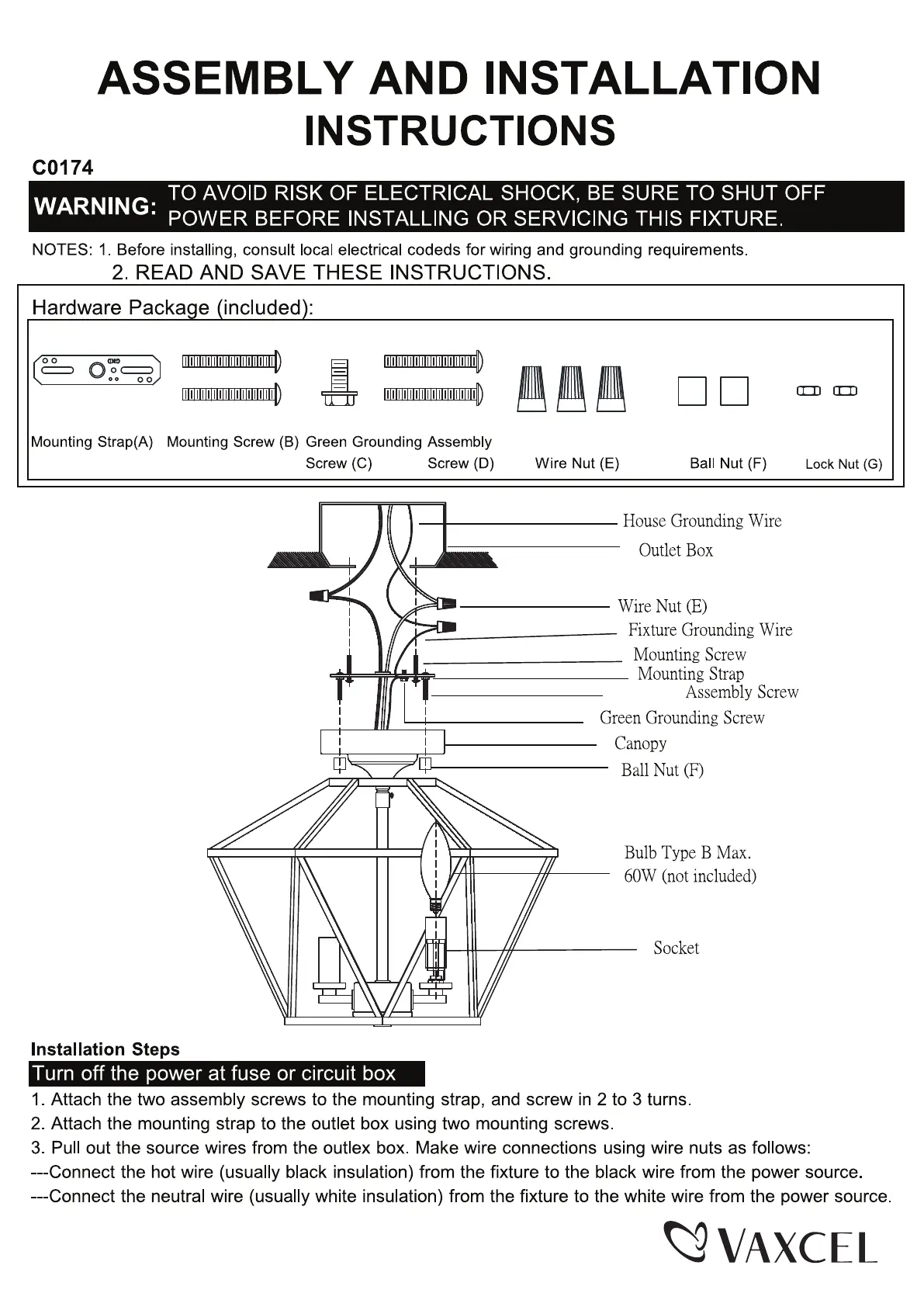 Bekijk gratis de handleiding van Vaxcel C0174 (2 pagina’s), behorend tot de categorie Verlichting. Deze gids werd als nuttig beoordeeld door 16 mensen en kreeg gemiddeld 4.8 sterren uit 9 reviews. Heb je een vraag over Vaxcel C0174 of wil je andere gebruikers van dit product iets vragen? Stel een vraag