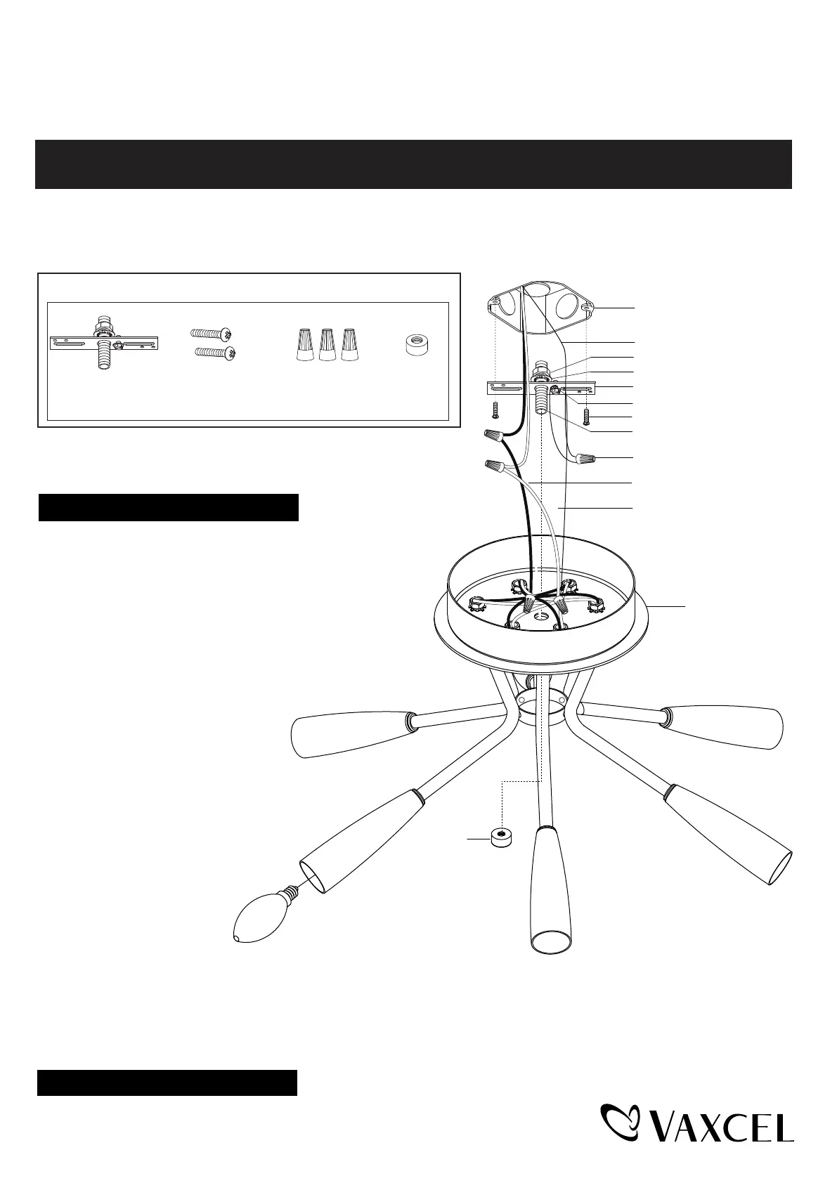 5. Install 6 x 60W Max. candelabra base bulbs (not included). Check relamping label at socket area or packaging for