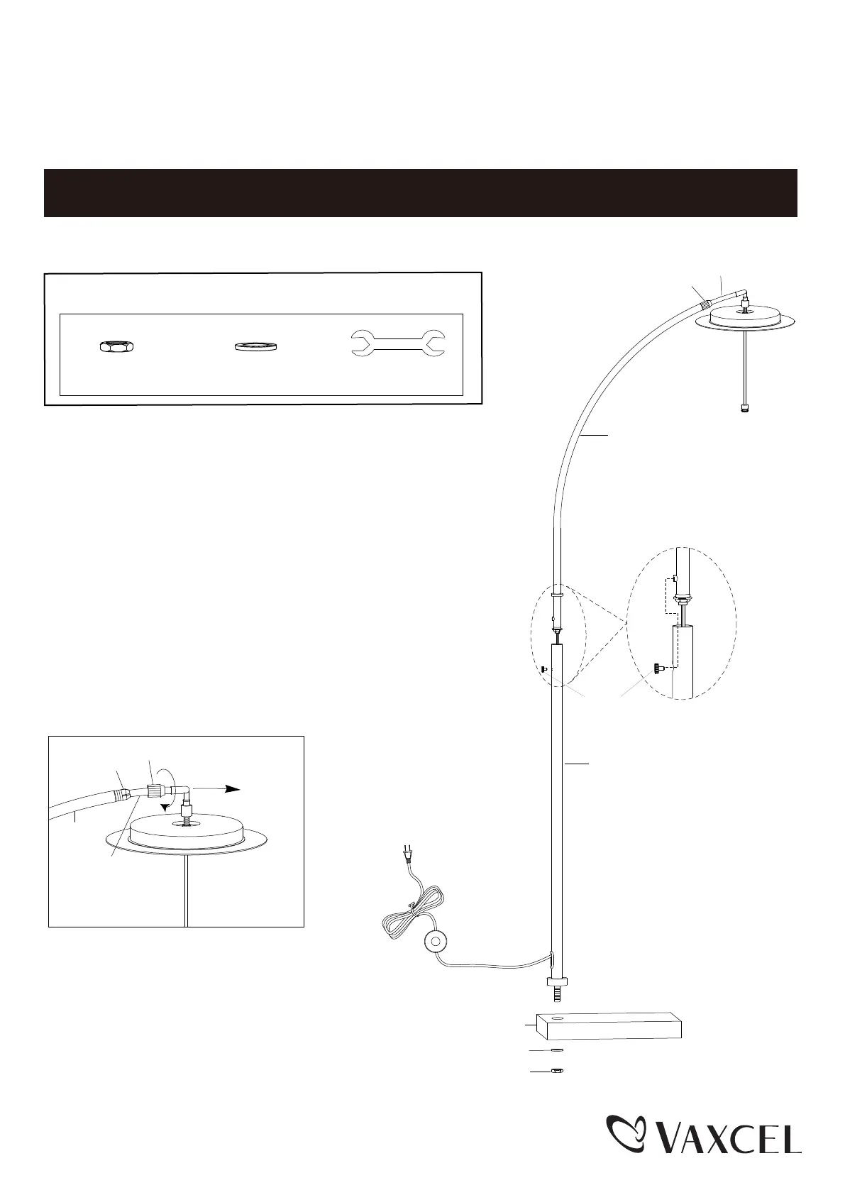 1. Attach the column into the hole of base and tighten it with metal pad
