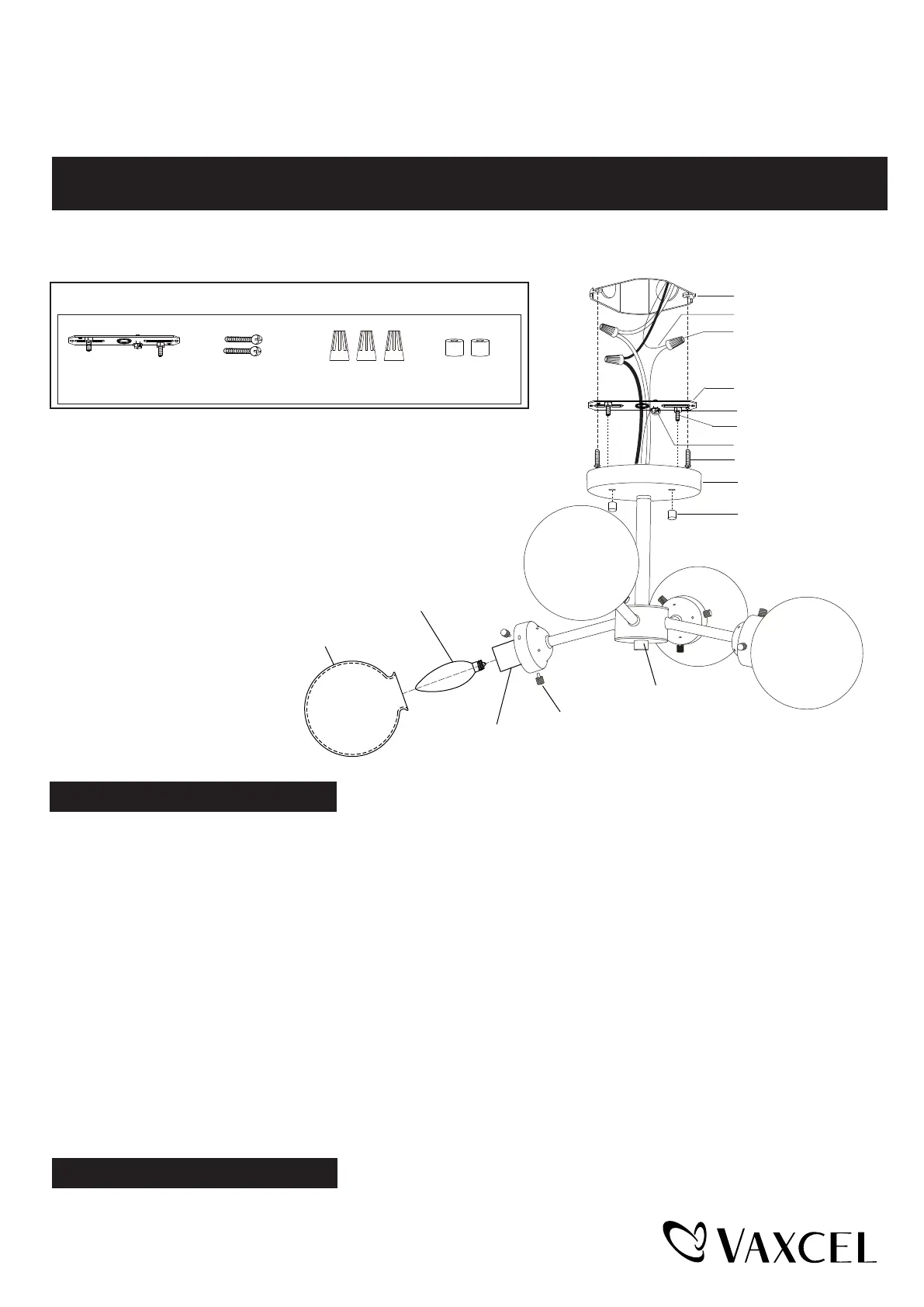 5. Install 4 X 40W Max. candelabra base bulbs (not included). Check relamping label at socket area or packaging for