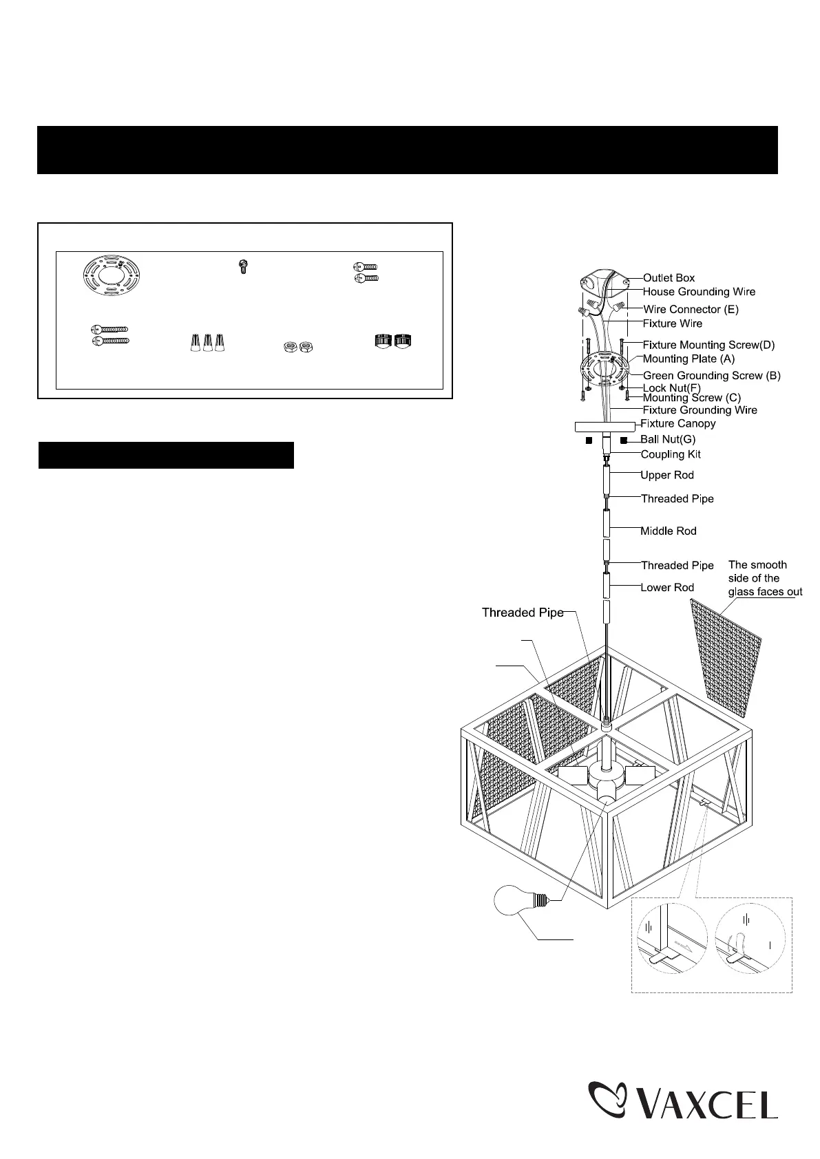 secure the lower rod onto fixture using the threaded pipe.
