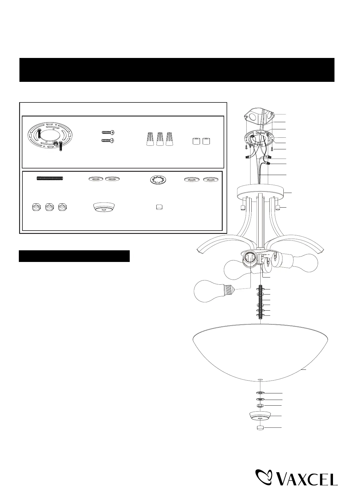 5. Install 3 x 60W Max. medium base bulbs (not included).