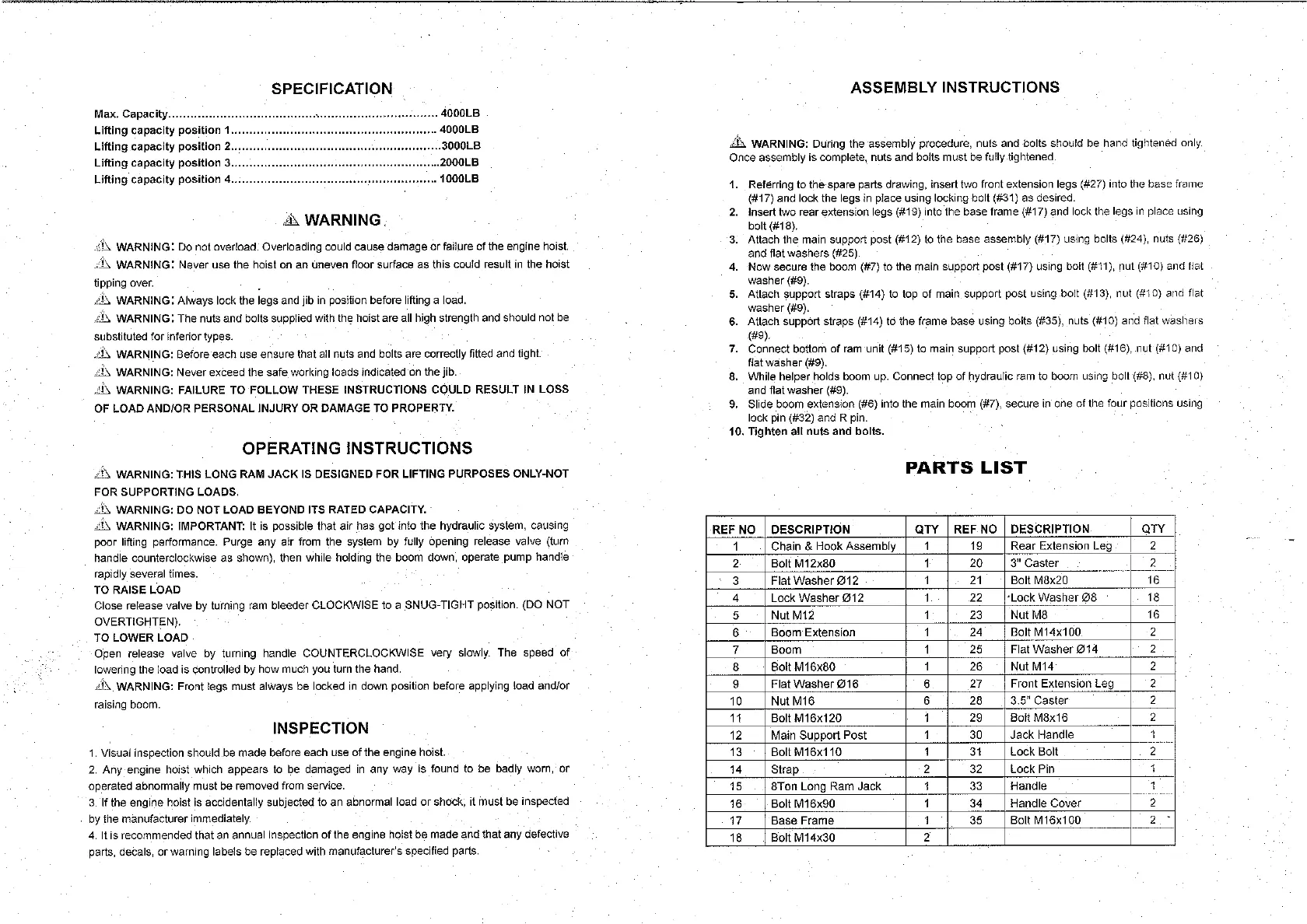 Vestil EHN-40-T Handleiding