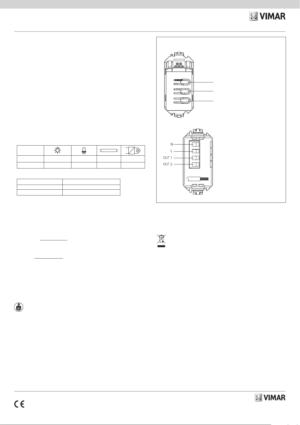 For full details, see the manuals, which can be downloaded from the website www.vimar.