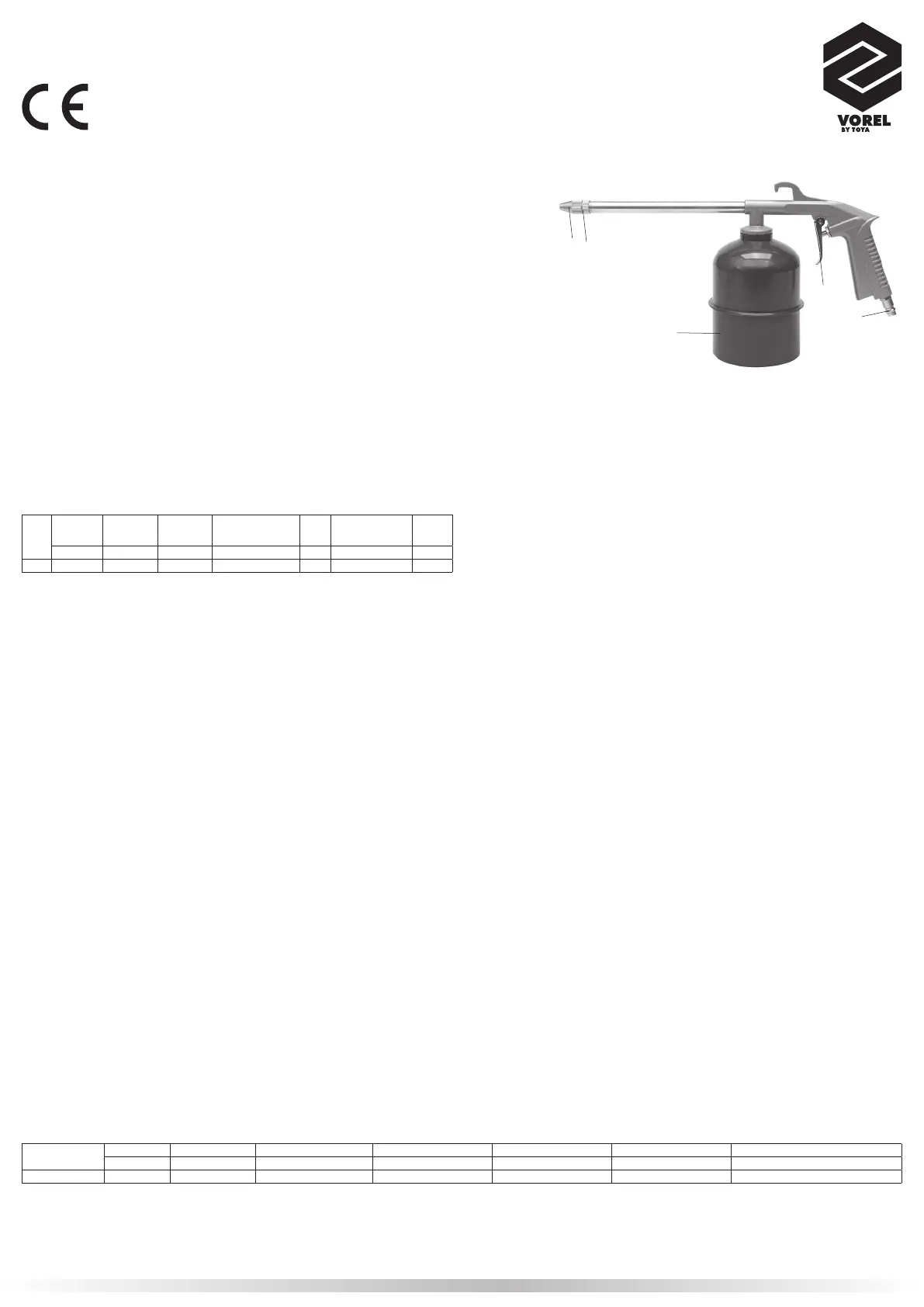 The purpose of the air engine cleaning gun is to clean surfaces with a compressed air jet and a cleansing agent. To clean surfaces use solely biodegradable cleansing agents. Do not use inflammable substances. The air engine