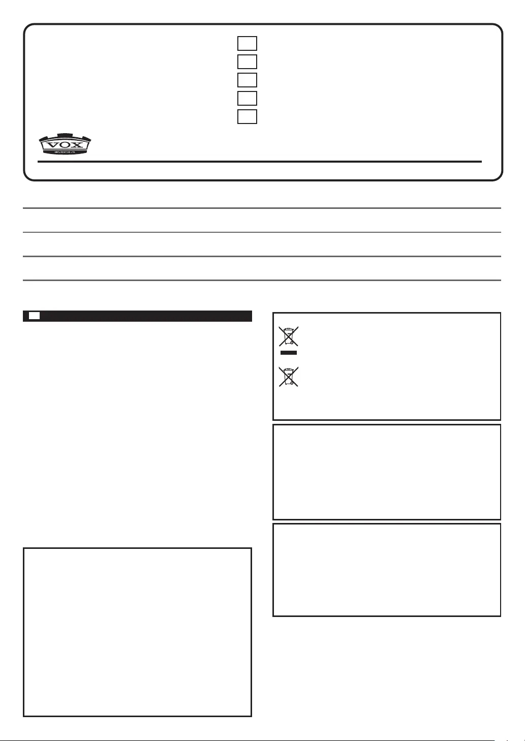 Thank you for purchasing the VOX VX50 GTV/VX15 GT modeling guitar amplifier. To help you get the most out of your new