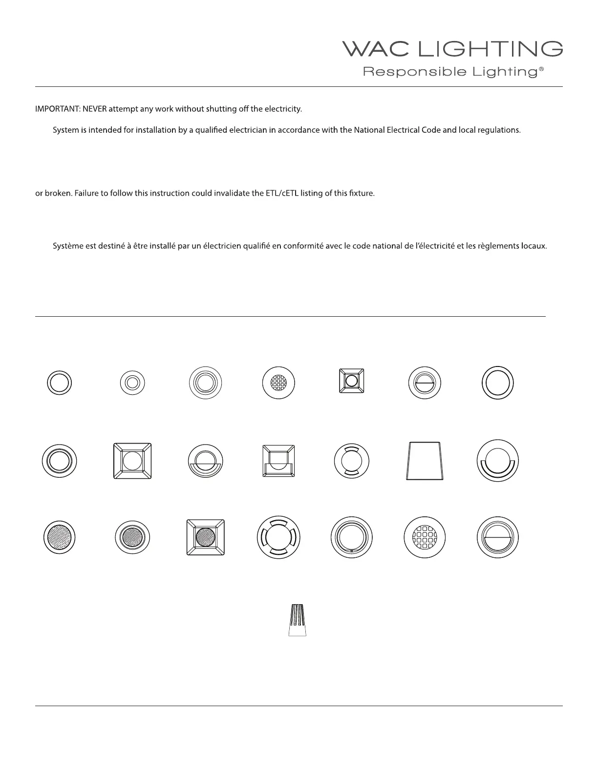 utilisez pas si elles sont usées ou brisées. Le non-respect de ces instructions peut annuler l’homologation ETL/cETL du luminaire.