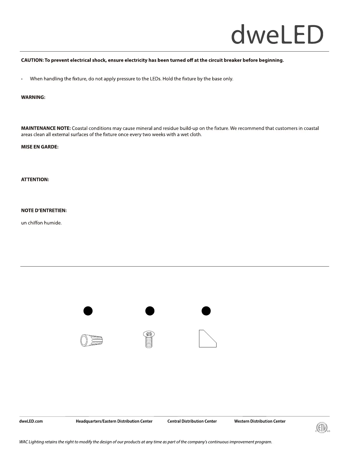avec les pièces et/ou accessoires fournis pour être utilisés avec les produits dweLED. Remplacer des pièces ou accessoires non conçus