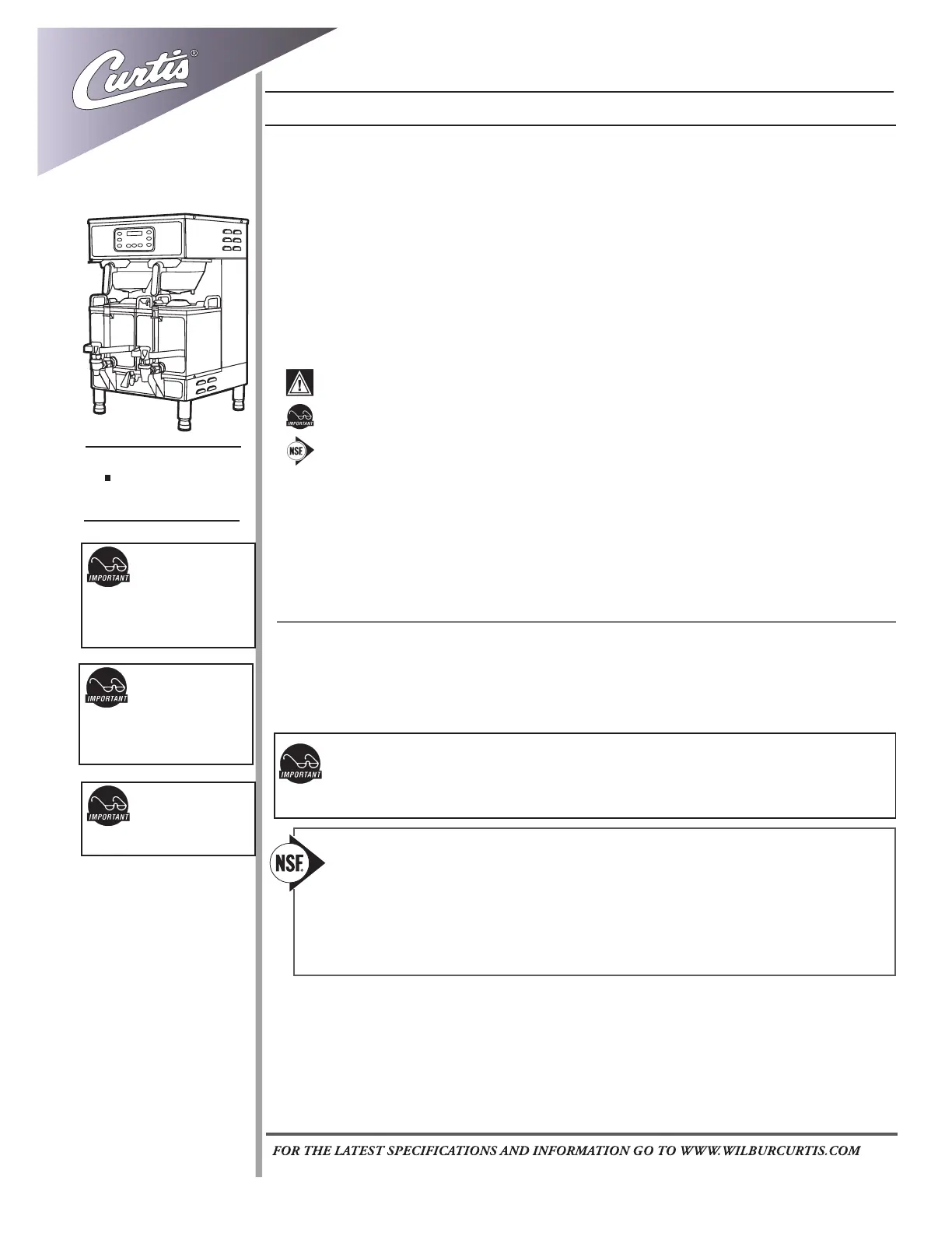 • Electrical: See attached schematic for standard model or visit www.wilburcurtis.com for your model.