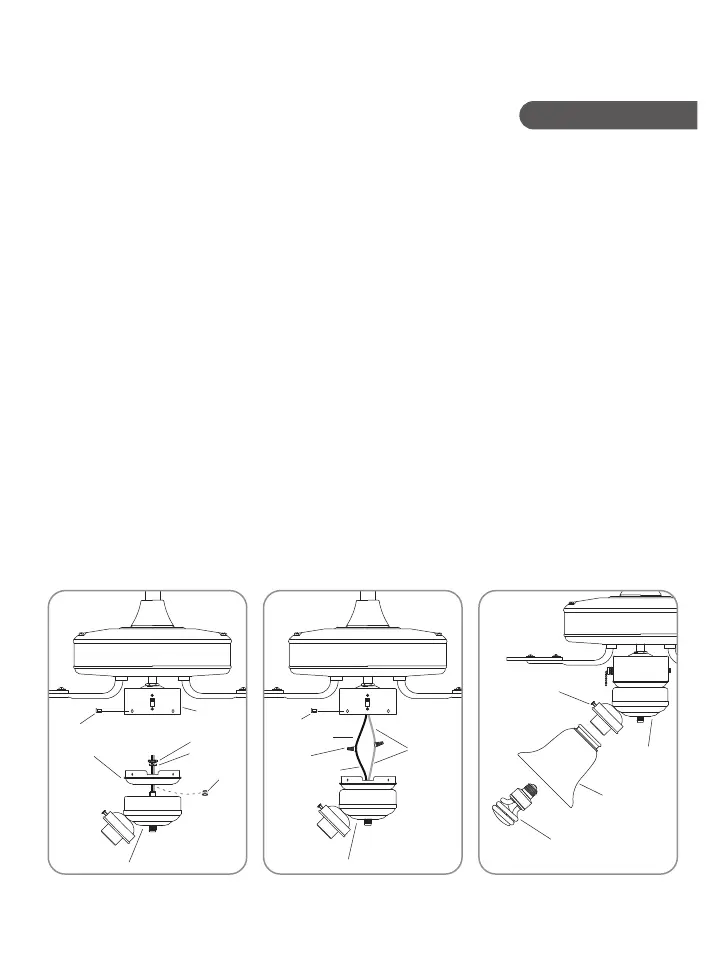 Setp 5: To install light kit glass shade, loosen the light kit screws and install the glass shade to the light kit.