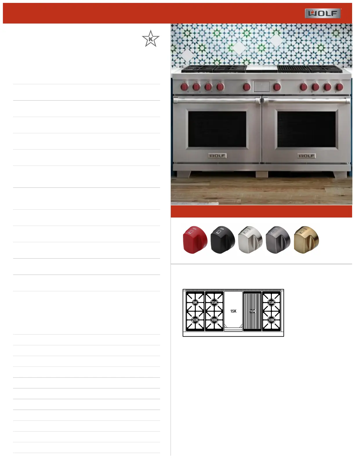 RANGETOP SPECIFICATIONS