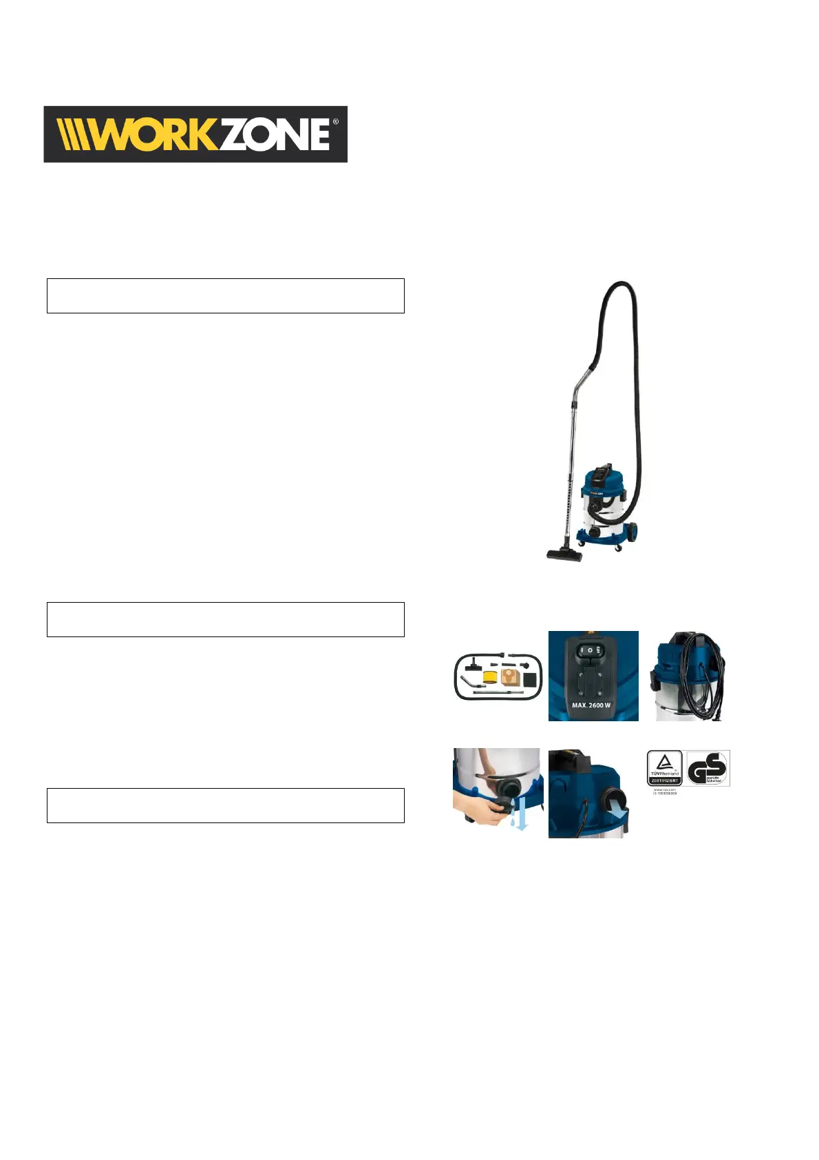 Bekijk gratis de handleiding van Workzone WZ-NTS 30 A (2 pagina’s), behorend tot de categorie Stofzuiger. Deze gids werd als nuttig beoordeeld door 26 mensen en kreeg gemiddeld 4.5 sterren uit 6 reviews. Heb je een vraag over Workzone WZ-NTS 30 A of wil je andere gebruikers van dit product iets vragen? Stel een vraag