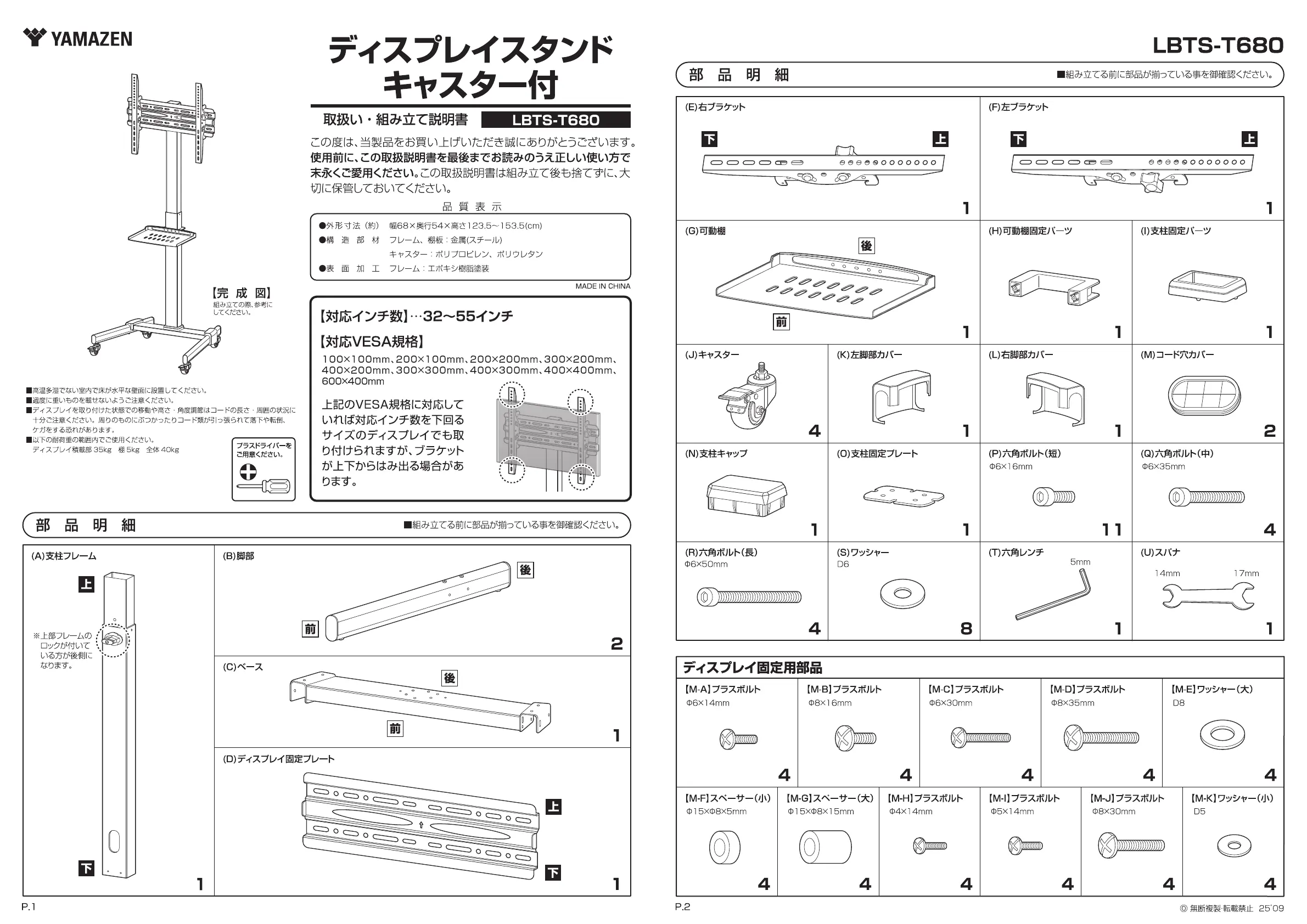 Bekijk gratis de handleiding van Yamazen LBTS-T680 (8 pagina’s), behorend tot de categorie Flat panel steun. Deze gids werd als nuttig beoordeeld door 2 mensen en kreeg gemiddeld 5.0 sterren uit 6 reviews. Heb je een vraag over Yamazen LBTS-T680 of wil je andere gebruikers van dit product iets vragen? Stel een vraag