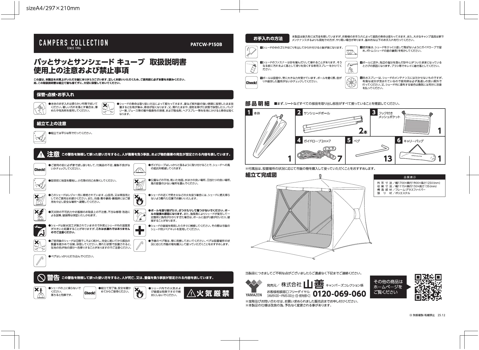 Bekijk gratis de handleiding van Yamazen PATCW-P150B (2 pagina’s), behorend tot de categorie Tent. Deze gids werd als nuttig beoordeeld door 2 mensen en kreeg gemiddeld 4.0 sterren uit 4 reviews. Heb je een vraag over Yamazen PATCW-P150B of wil je andere gebruikers van dit product iets vragen? Stel een vraag