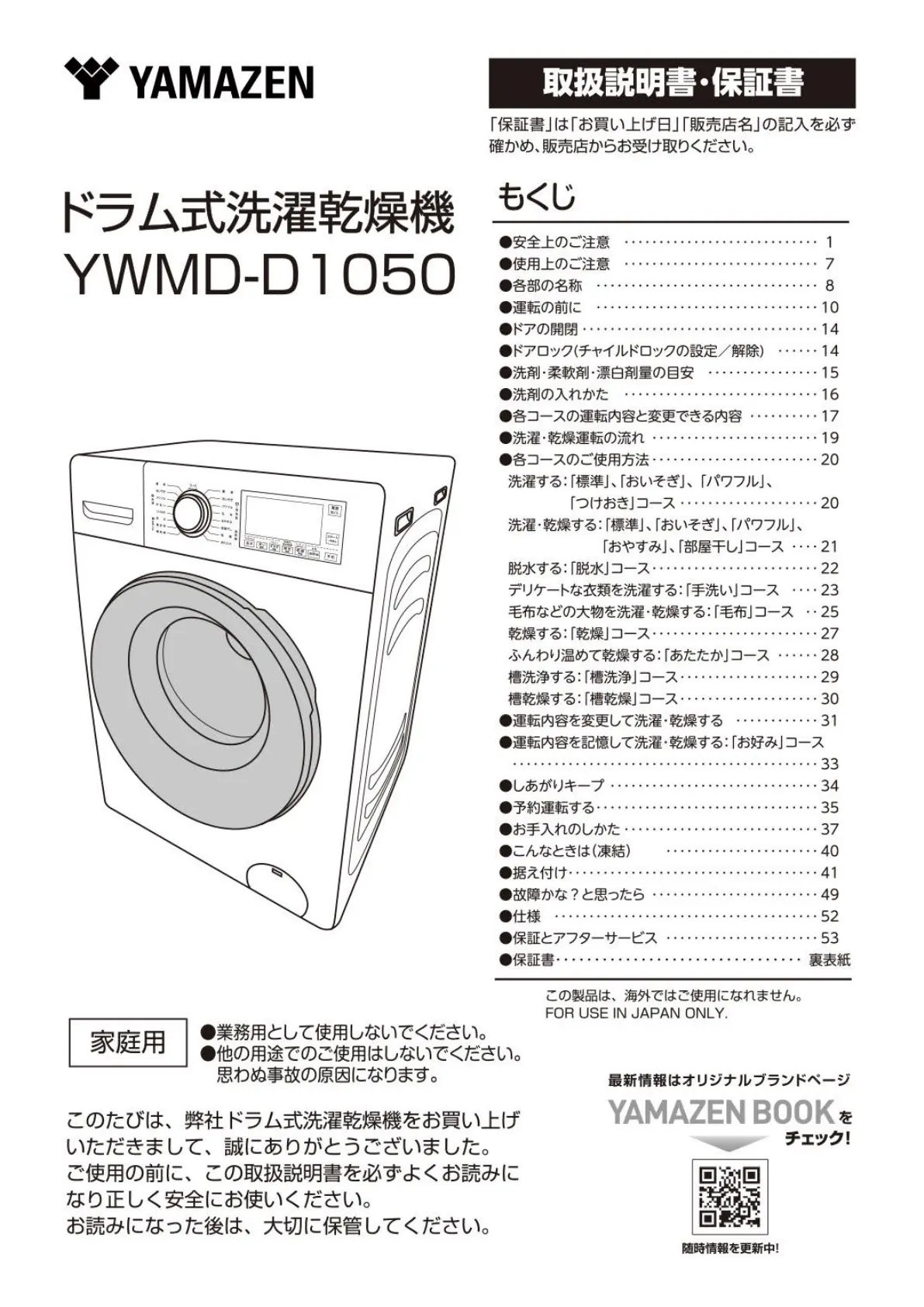 Bekijk gratis de handleiding van Yamazen YWMD-D1050 (55 pagina’s), behorend tot de categorie Wasmachine. Deze gids werd als nuttig beoordeeld door 2 mensen en kreeg gemiddeld 4.4 sterren uit 9 reviews. Heb je een vraag over Yamazen YWMD-D1050 of wil je andere gebruikers van dit product iets vragen? Stel een vraag