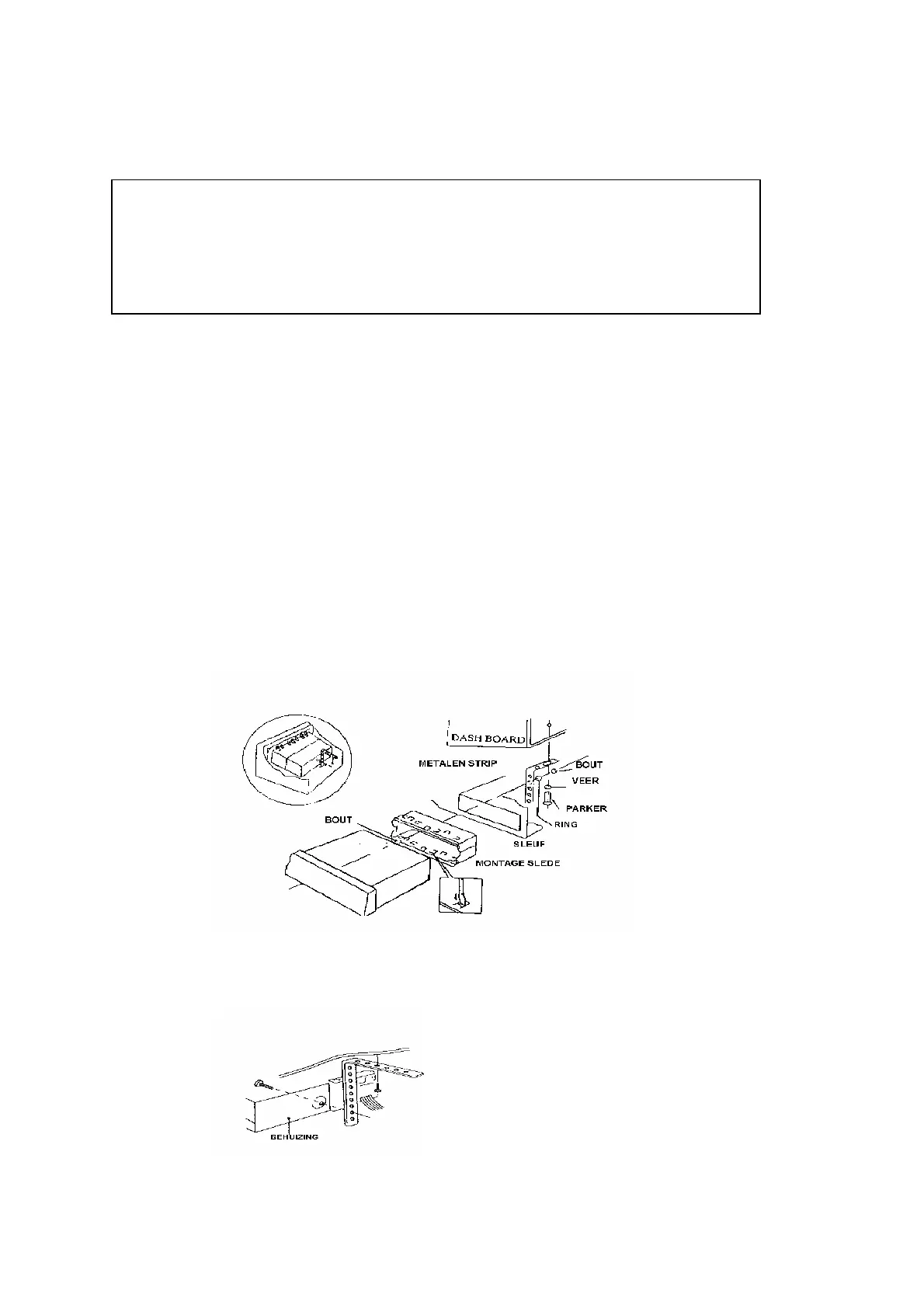 DE MONTAGE BEHUIZING MOET ALS EERST GEMONTEERD WORDEN, ZODAT LATER DE RADIO PASSEND IN HET DASHBOARD