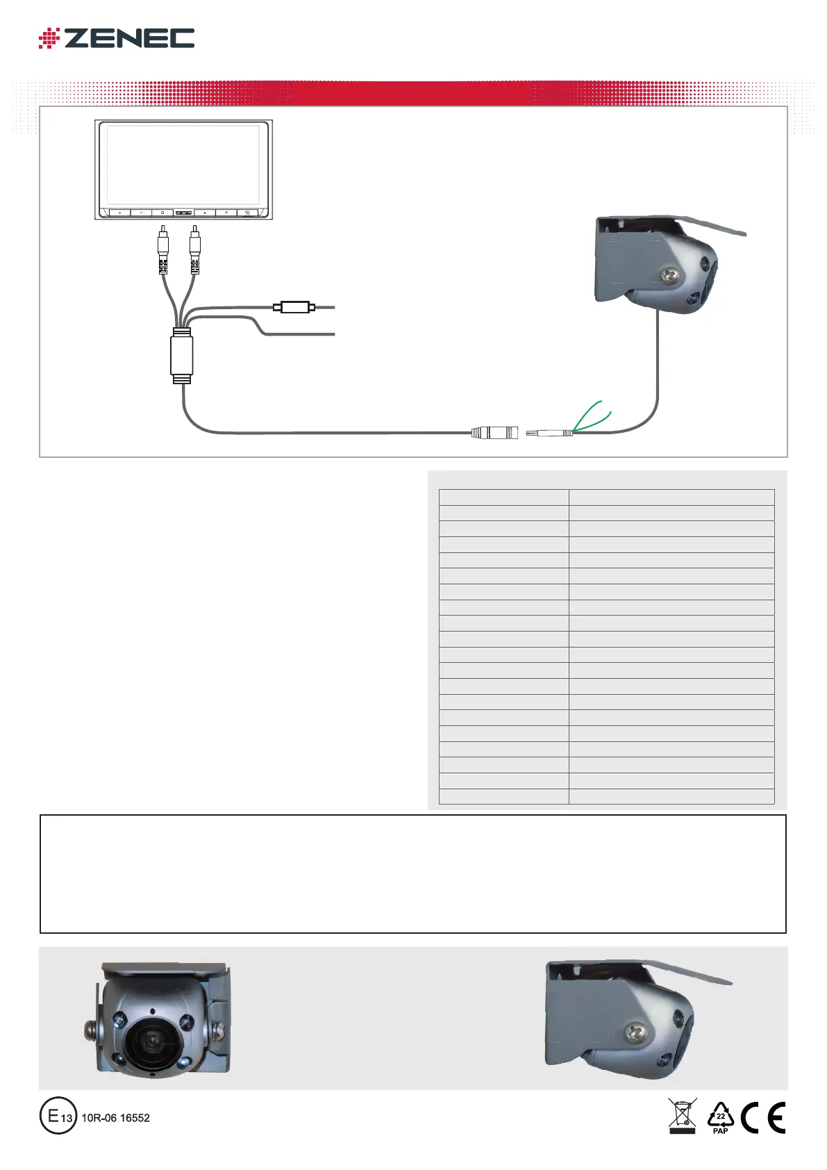 This ZENEC rear view camera model has been developed for